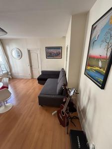 Interiér nabízí pohodlný obývací prostor vybavený pohovkou a televizí s plochou obrazovkou, kde si můžete odpočinout po dni stráveném poznáváním Paříže. K dispozici je pracovní kout i ventilátor pro příjemné klima během teplých dnů. Ložnice je zařízená kvalitní postelí s peřinami a polštáři různých typů podle vašich preferencí.