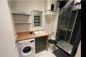 Inside, you’ll find a well-appointed kitchen ready for meal preparation, alongside a modern bathroom and laundry facilities including a washing machine for added convenience. A flat-screen TV is available for entertainment during your stay.