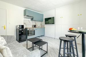 L’appartement comprend une chambre confortable et un séjour équipé d’un canapé-lit accompagné d’une table basse. La cuisine entièrement aménagée dispose notamment d’un réfrigérateur ainsi que d’une machine pour préparer café et thé. La salle de bains est dotée d’une douche moderne et propose également un sèche-cheveux.