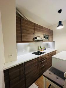L’appartamento dispone di una camera da letto accogliente e un bagno dotato sia di vasca che doccia. La cucina completamente attrezzata include forno tradizionale, microonde e piano cottura, inoltre è presente una lavatrice per maggiore comodità durante il soggiorno. Gli ospiti trovano forniti asciugamani morbidi e biancheria da letto con cuscini anallergici.