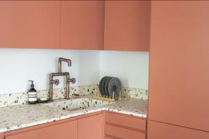 Inside, you'll find a comfortable bedroom alongside a separate kitchen equipped with modern appliances including a dishwasher and oven. The living area features a flat-screen TV and complimentary Wi-Fi throughout the space, plus access to an online streaming service for entertainment during your stay.