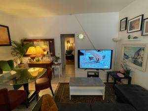 Located in the heart of Paris, this stylish one-bedroom apartment offers a comfortable retreat with modern conveniences. The living area features a flat-screen TV and opens onto a balcony, perfect for enjoying fresh air after a day exploring the city. The fully equipped kitchen allows you to prepare your own meals at your leisure.