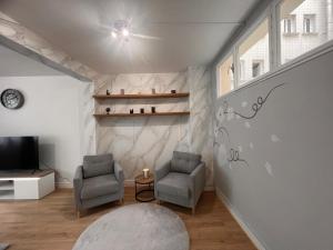 Interiér nabízí pohodlný obývací prostor s televizí vybavenou přístupem ke streamovacím službám a plně zařízenou kuchyni, kde nechybí trouba, mikrovlnná trouba, myčka nádobí ani kávovar či rychlovarná konvice. Jídlo si můžete vychutnat u jídelního stolu s elegantními sklenicemi na víno. Koupelna je vybavena vanou nebo sprchovým koutem, bidetem i fénem a doplňky zdarma. Součástí jsou také čerstvé ručníky a ložní prádlo.