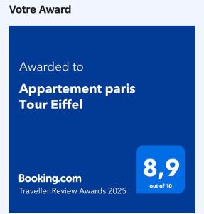 Stayed at Appartement paris Tour Eiffel? Your experience is very valuable to us and other guests. Leave your review! Thank you.