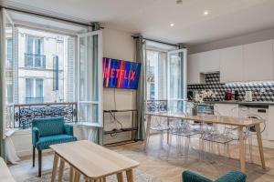 Guests benefit from free Wi-Fi accessible throughout the unit as well as conveniences such as an iron, washing machine, tea and coffee maker, desk space for work or study purposes, and a crib if needed. The location places visitors close to major attractions including Opéra Garnier, Louvre Museum, Notre Dame Cathedral, Sainte-Chapelle, Gare du Nord station and La Cigale Concert Hall. Paris - Orly Airport is 17 kilometers away.