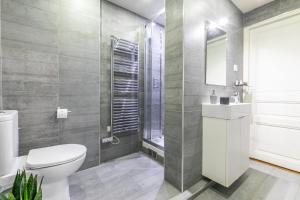 Each apartment features a roomy kitchenette equipped with modern appliances including a dishwasher, microwave, toaster, refrigerator, and stovetop. Essential cookware is provided alongside a coffee machine and electric kettle for added convenience. Private bathrooms come with showers and hairdryers.