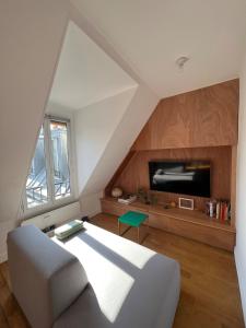 Additional conveniences include a flat-screen TV for entertainment and access to an on-site washing machine. This smoke-free accommodation provides a tranquil retreat amid one of Paris’s liveliest districts.