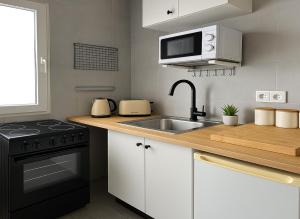 Interiér nabízí pohodlnou ložnici a prostorný obývací pokoj vybavený televizí s plochou obrazovkou a přístupem ke streamovacím službám jako Netflix. Kuchyň je kompletně zařízená včetně trouby a mikrovlnné trouby pro přípravu jídel podle vlastního gusta. Koupelna disponuje sprchovým koutem i fénem na vlasy, hosté zde najdou také bezplatné toaletní potřeby.