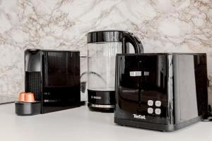 The apartment’s fully equipped kitchen is thoughtfully separated from the lounge space, creating a perfect flow for relaxing or entertaining. A private bathroom adds convenience to your stay, while modern touches like air conditioning ensure comfort throughout warmer days. Additional amenities include a washing machine and a flat-screen TV.