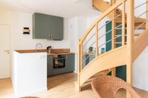 Tento světlý apartmán se nachází přímo v srdci čtvrti Le Marais v Paříži a nabízí krásný výhled na město. Je situován jen 1,3 km od Opéra Bastille a 1,8 km od katedrály Notre Dame. V dosahu přibližně 2,8 km jsou hlavní vlaková nádraží Gare de l'Est, Gare du Nord i Paris-Gare-de-Lyon. Centrum Pompidou je vzdálené pouhých 1,2 km a centrum města asi 2,6 km. Milovníci umění ocení blízkost muzea Louvre ve vzdálenosti kolem 3 km a kaple Sainte-Chapelle zhruba 3,1 km daleko. Letiště Paris - Orly leží přibližně 14 km od apartmánu.