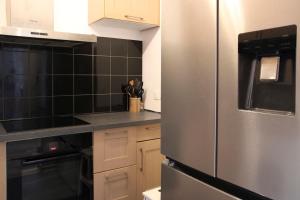 В апартаментах предусмотрена гостиная с раскладным диваном и телевизором, а также полностью оборудованная кухня с посудомоечной машиной, духовкой, кофемашиной и холодильником. Для создания комфортной атмосферы установлен обогрев.
