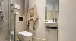 Koupelna nabízí sprchu i vanu spolu s toaletními potřebami. Další vybavení zahrnuje zásuvky u postele, sušák na prádlo, vinné sklenice v jídelním prostoru a přísný zákaz kouření po celém objektu. Přístup je zabezpečen klíčovým vstupem na místě s vlastním soukromým vchodem vyhrazeným tomuto apartmánu.
