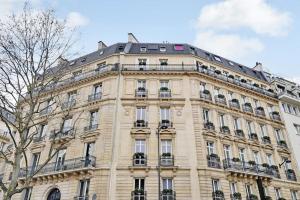 Charme au Cœur de Paris is an apartment situated in Paris's 8th arrondissement, just over a kilometer from iconic landmarks such as the Arc de Triomphe and Gare Saint-Lazare, offering convenient access to the city center.
