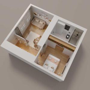 Byt nabízí jednu ložnici a obývací pokoj vybavený rozkládací pohovkou a televizí s plochou obrazovkou. Součástí je klimatizace i samostatný vstup pro větší soukromí hostů. Podlahy jsou pokryty panely nebo parketami.