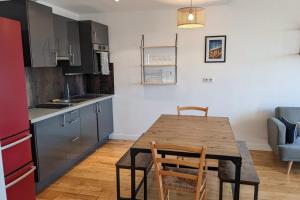 Apartmán se nachází v budově s výtahem a nabízí nekuřácké prostředí. K dispozici jsou dvě ložnice a obývací pokoj vybavený rozkládací pohovkou a jídelním stolem. Plně vybavená kuchyň zahrnuje troubu, lednici i kávovar pro přípravu ranní kávy či svačiny během dne. Koupelna disponuje vanou nebo sprchovým koutem spolu s fénem na vlasy. Pro pohodlí hostů jsou připraveny ručníky i povlečení.