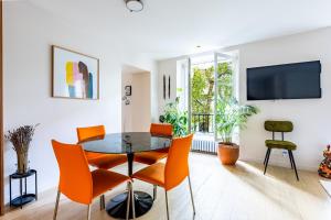 Tento čerstvě zrekonstruovaný byt o rozloze 100 m² se nachází v srdci Paříže, v prestižní čtvrti Saint-Germain-des-Prés. Nabízí tři ložnice a dvě prostorné obývací části vybavené televizí s kabelovými kanály a online službami. Kuchyň je plně zařízená - najdete zde troubu, varnou desku i myčku nádobí.