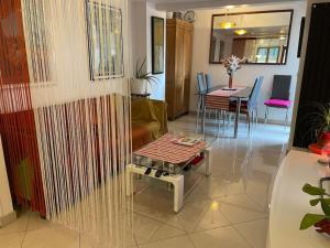 All’interno, l’appartamento vanta una cucina completamente attrezzata con lavastoviglie, forno, microonde e utensili base insieme a un’area pranzo. Il soggiorno è caratterizzato da riscaldamento e zona salotto con divano. Le due camere da letto sono arredate con cuscini non piuma, pavimenti in piastrelle o marmo e finestre che si affacciano sul cortile interno. Il bagno offre una doccia walk-in con shampoo fornito ed è completo di asciugamani, biancheria da letto, accappatoi e prodotti da toilette omaggio.