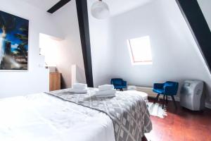 Wooden floors create a warm atmosphere throughout the apartment, complemented by heating for cooler days. Sleep soundly on hypoallergenic pillows designed to enhance restfulness. Entertainment needs are met with a flat-screen TV.