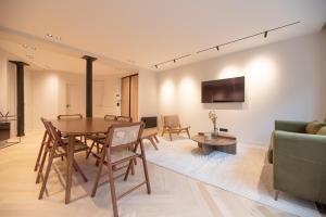 Inside, the apartment features a spacious living area with a flat-screen TV equipped for streaming and a comfortable seating arrangement ideal for relaxing after sightseeing. The fully equipped kitchen includes an oven, microwave, coffee machine, and all essential utensils to prepare meals at your convenience, adjacent to it is a dining space designed for shared meals.
