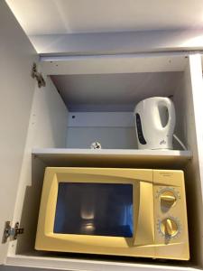 Inside, you’ll find a cozy bedroom alongside a bathroom fitted with a modern shower. The kitchenette comes equipped with essentials including a microwave and fridge, complemented by a dedicated dining area for relaxed meals at home. The living space features a flat-screen TV with satellite channels to unwind after your day out.