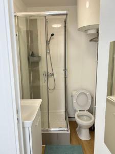 Inside, you’ll find a comfortable bedroom alongside a living area equipped with heating and practical furnishings such as a wardrobe and clothes rack. The kitchen comes ready for use with essentials including a refrigerator, microwave, and coffee maker-perfect for preparing meals at your leisure. The bathroom features either a shower or bathtub plus complimentary toiletries like shampoo.