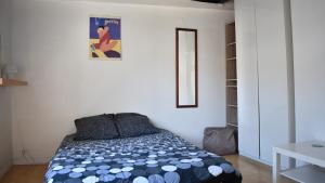 The private studio overlooks a quiet inner courtyard and features soundproofing elements that ensure a restful stay free from outside noise disturbances. Inside, you’ll find a comfortable bed over two meters long with a hypoallergenic pillow for added comfort, along with an en-suite bathroom equipped with a bathtub and hairdryer.
