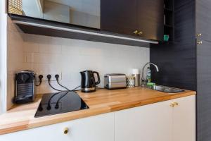 Este apartamento de un dormitorio dispone de una cocina totalmente equipada con frigorífico, cafetera y tetera, además de plancha. La zona de estar cuenta con televisión pantalla plana, mientras que el baño ofrece artículos como champú, jabón, toallas y secador. Los huéspedes pueden disfrutar de conexión Wi-Fi gratuita en todas las áreas.