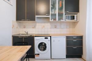 For self-catering needs, the apartment includes kitchenware along with a stovetop and microwave. Laundry convenience comes from an in-unit washing machine and ironing facilities are also supplied. The entire property maintains a non-smoking policy.