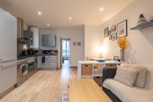 Die Unterkunft umfasst ein Schlafzimmer sowie ein Badezimmer mit Dusche und Haartrockner. Ein separater Wohnbereich lädt mit einem Fernseher zum Entspannen ein. Die Küche ist komplett ausgestattet - unter anderem mit Backofen, Geschirrspüler und Toaster - zudem stehen Kühlschrank und Waschmaschine zur Verfügung.