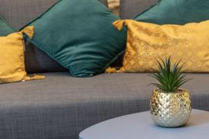 Inside the apartment, guests will find a kitchen equipped with an oven and refrigerator alongside a seating area with a sofa. The bathroom includes a walk-in shower and hairdryer. Entertainment is provided by a flat-screen TV with free Wi-Fi throughout the unit.