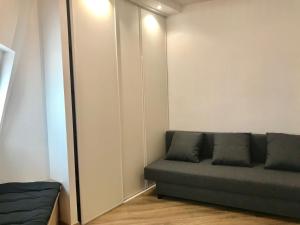 В апартаментах предусмотрен отдельный вход и звукоизоляция для спокойного отдыха. В комнате стоит раскладной диван рядом с окном с панорамным видом на город. Для создания комфортной атмосферы доступны кондиционер, отопление и вентилятор.