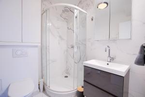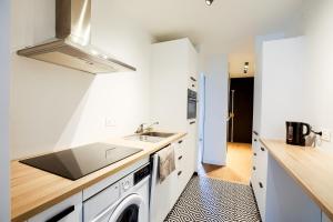 Inside, you’ll find a separate kitchen fully equipped with modern appliances including a dishwasher and oven, making meal preparation effortless during your stay. The living area features a comfortable sofa bed alongside a flat-screen TV, creating a cozy spot to unwind after sightseeing. The bathroom comes with either a bathtub or shower, complemented by essentials such as shampoo and a hairdryer for your convenience.