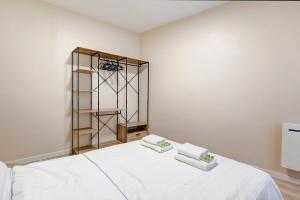 Inside, you’ll find a fully equipped kitchen separate from the living area, complete with a kettle for tea or coffee. The apartment includes two bedrooms furnished with fresh linens and towels provided for your convenience. A washing machine and refrigerator are also available to make longer stays more comfortable.