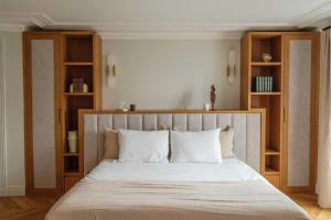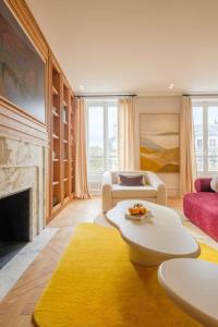 Guests will appreciate thoughtful amenities including air conditioning throughout the apartment and heating in the sleeping areas to ensure a pleasant stay year-round. Large windows provide stunning views over the Parisian skyline. For added convenience, there is private access to the apartment and an elevator within the building.