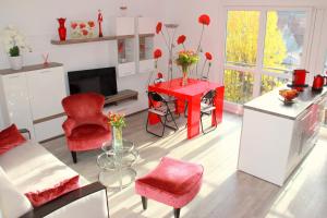 Guests enter through their own private entrance into part of a semi-detached building that has an elevator stopping on the apartment’s floor. Heating ensures warmth throughout the space, complemented by complimentary Wi-Fi covering all areas.