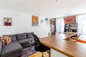 Discover a cozy one-bedroom apartment nestled in Paris’s vibrant 18th arrondissement, just over a kilometer from Gare du Nord and within easy reach of iconic landmarks like Sacré-Coeur. This inviting space offers a private entrance leading to a spacious living area complete with a TV for your relaxation.