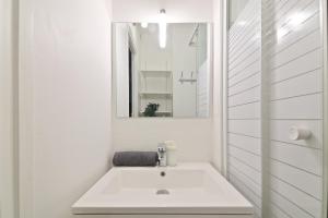 The building is serviced by an elevator leading to all floors. Inside the apartment, there’s also a workspace complete with wine glasses for unwinding after exploring the city. Check-in is streamlined with contactless payment options available.