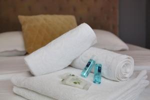 This inviting apartment features one separate bedroom and a bathroom stocked with complimentary toiletries including shampoo and soap. The kitchen comes equipped with essentials like a microwave, refrigerator, coffee maker, and tea facilities, making it convenient for preparing meals or snacks. In the living area, guests will find a dining table alongside a television for relaxation.