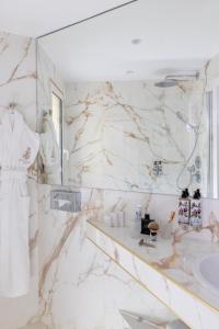 Este hotel boutique cuenta con 26 habitaciones y suites decoradas con tejidos exclusivos de Lelievre y Tassinari & Chatel. Las paredes y ventanas están revestidas con materiales delicados que aportan calidez, mientras que los suelos son de parquet roble. Los paneles elegantes junto a muebles lacados en negro con detalles dorados evocan una atmósfera refinada inspirada en épocas pasadas.