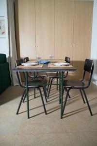 Additional conveniences include heating, a fan, and laundry facilities such as a washing machine, tumble dryer, and clothes drying rack. The dining area adjoins the kitchen space where guests can use the refrigerator and tea/coffee maker. Safety measures like smoke detectors are installed on site. On-street parking is available nearby.