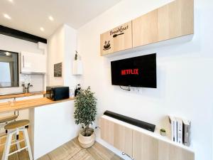 Apartmán nabízí jednu ložnici a obývací pokoj vybavený televizí s plochou obrazovkou a přístupem ke streamovacím službám. Kuchyň je kompletně zařízená - nechybí mikrovlnná trouba, toustovač ani varná deska. Koupelna disponuje sprchovým koutem i fénem, připraveny jsou ručníky, povlečení i základní kosmetika včetně šamponu.
