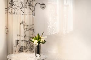 Gli ambienti sono stati curati dall’architetto Pascale Douillard e presentano un design moderno in bianco e nero che conferisce un’atmosfera elegante e contemporanea. Ogni camera dispone di aria condizionata con controllo individuale, riscaldamento regolabile e ampi spazi per riporre gli effetti personali, come armadi o guardaroba. Dalla finestra si può godere della vista sul tranquillo giardino interno.
