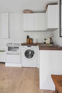 La cocina está equipada con todo lo necesario: lavavajillas, horno eléctrico y hervidor, facilitando preparar comidas cómodamente. El baño incluye ducha con champú, secador de pelo y lavadora, se proporcionan ropa de cama y toallas limpias para mayor comodidad.