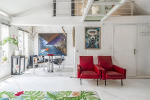 Located in the heart of Paris, this air-conditioned loft offers a comfortable retreat just 500 meters from the Pompidou Center and within walking distance of iconic landmarks like Notre Dame Cathedral (1.2 km) and Sainte-Chapelle (1.4 km). The Louvre Museum is 1.7 km away, while Gare de l'Est and Gare du Nord train stations can be reached in around 2.2 to 2.3 km. For a touch of greenery, the Luxembourg Gardens lie 2.8 km from the apartment, with Opera Garnier situated at a distance of 3.2 km. Paris-Orly Airport is approximately 18 km away.