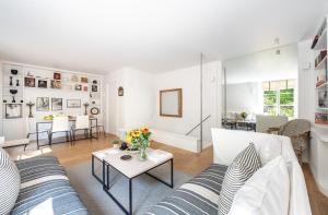 Entertainment options include a flat-screen TV, while numerous power outlets near the bed make charging devices effortless. High-speed Wi-Fi is available throughout the apartment at no extra cost.