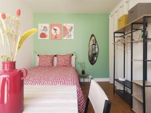 Tento světlý a útulný studiový apartmán se nachází v 18. pařížském obvodu, jen 1,5 km od baziliky Sacré-Coeur. Do stanice metra Pigalle a koncertní haly La Cigale je to přibližně 1,9 km. Hlavní vlakové nádraží Gare du Nord je vzdálené asi 3 km, Gare Saint-Lazare zhruba 3,1 km a Gare de l'Est kolem 3,5 km. Slavná Opera Garnier leží ve vzdálenosti přibližně 3,6 km a na letiště Paris - Charles de Gaulle dojedete za cca 19 km.