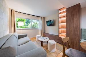 This one-bedroom apartment contains a living room with a flat-screen TV and a fully equipped kitchen. The private bathroom includes towels, toiletries such as shampoo and soap, a hairdryer, and fresh linens are provided for the bed. Heating ensures comfort throughout your stay.