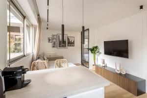 Для комфортного пребывания предусмотрен беспроводной интернет на всей территории помещения и система отопления. Среди дополнительных удобств - стойка для одежды, утюг и кофемашина со специальными бокалами для вина. Апартаменты расположены на верхних этажах здания с лифтом, вход также оборудован подъемником.