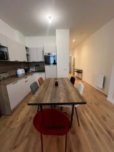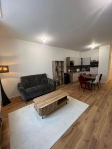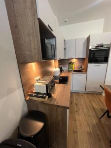 The apartment features one bedroom alongside a comfortable living area and a fully equipped kitchen, ideal for preparing meals at your convenience. A modern bathroom complements the space, which includes heating to ensure comfort throughout your stay. From the window, enjoy pleasant views of the surrounding neighborhood.
