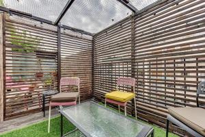 This charming one-bedroom studio in Paris offers a peaceful retreat with a sunny terrace overlooking the city and access to a garden furnished for relaxing outdoors. Inside, you’ll find a fully equipped kitchen featuring a dishwasher, oven, and all the essentials including cookware and wine glasses. The living area includes a dining table, wardrobe, and clothes drying rack for added convenience.